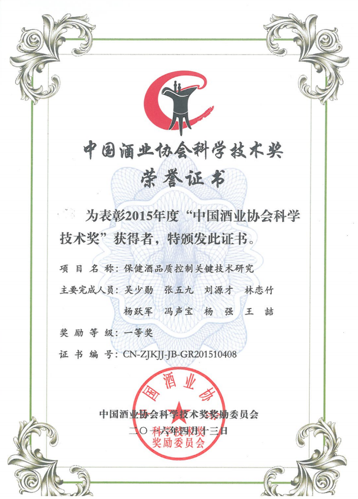 目前勁牌有限公司共獲得國家級、省級、行業級科技獎勵27項。其中國家級科技獎1項,省部級科技獎11項,行業級科技獎15項。