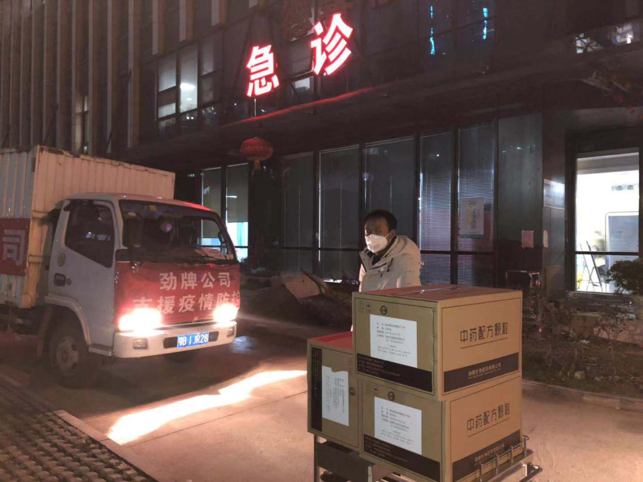 1月27日(正月初三),勁牌將趕制的3.6萬服預防新型冠狀病毒肺炎中藥配方顆粒送達武漢、黃石各指定醫院,為一線醫護人員送去一份健康守護。